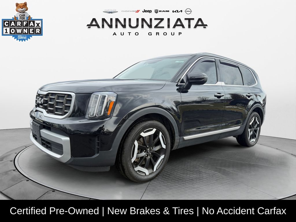 CARFAX One-Owner. Clean CARFAX. Certified. Ebony Black 2023 Kia Telluride S AWD 3.8L V6 DGI DOHC Dual CVVT